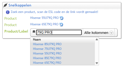 - Zoek en selecteer de producten die je op een label wilt hebben