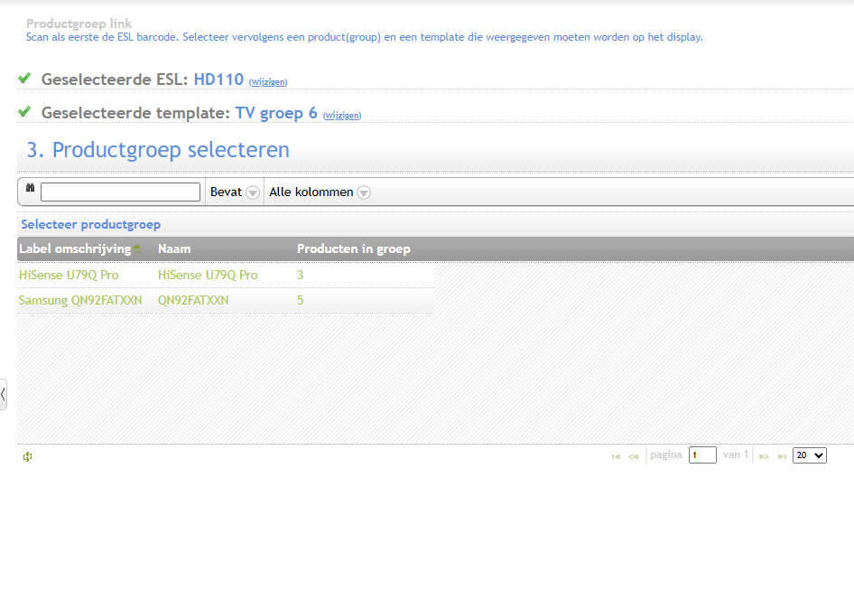 - Selecteer de productgroep die je wilt koppelen